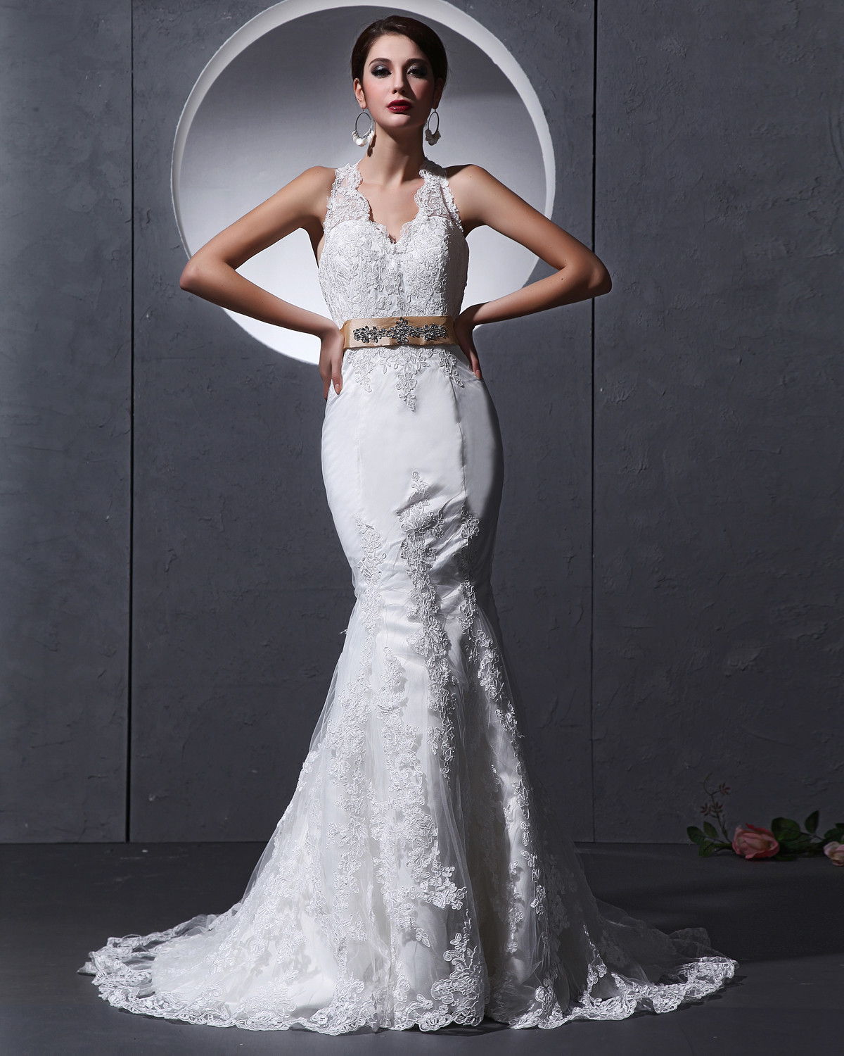 العلامة التجارية:فساتين الزفاف ذات الرقبة10014